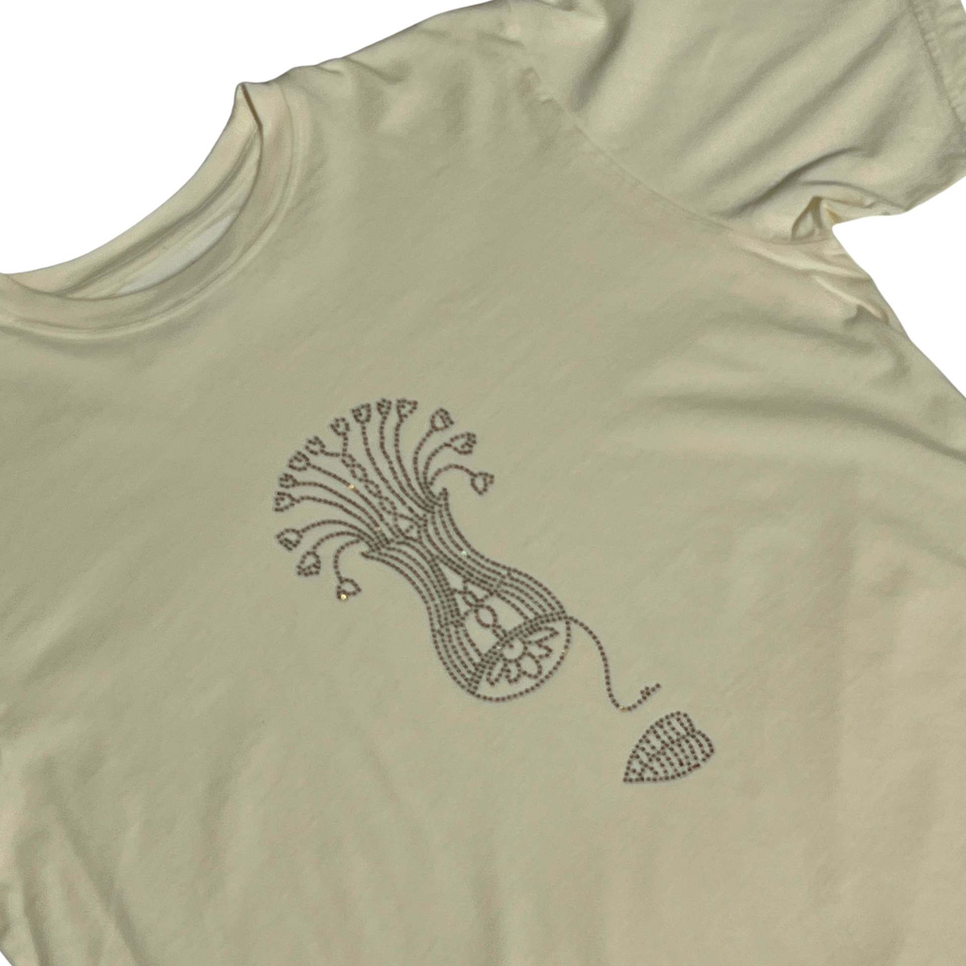 This organic cotton tee features a rhinestone "flowerpoteye" design on the front, making it the perfect piece for elevating your outfit. It fits as an oversized medium.
