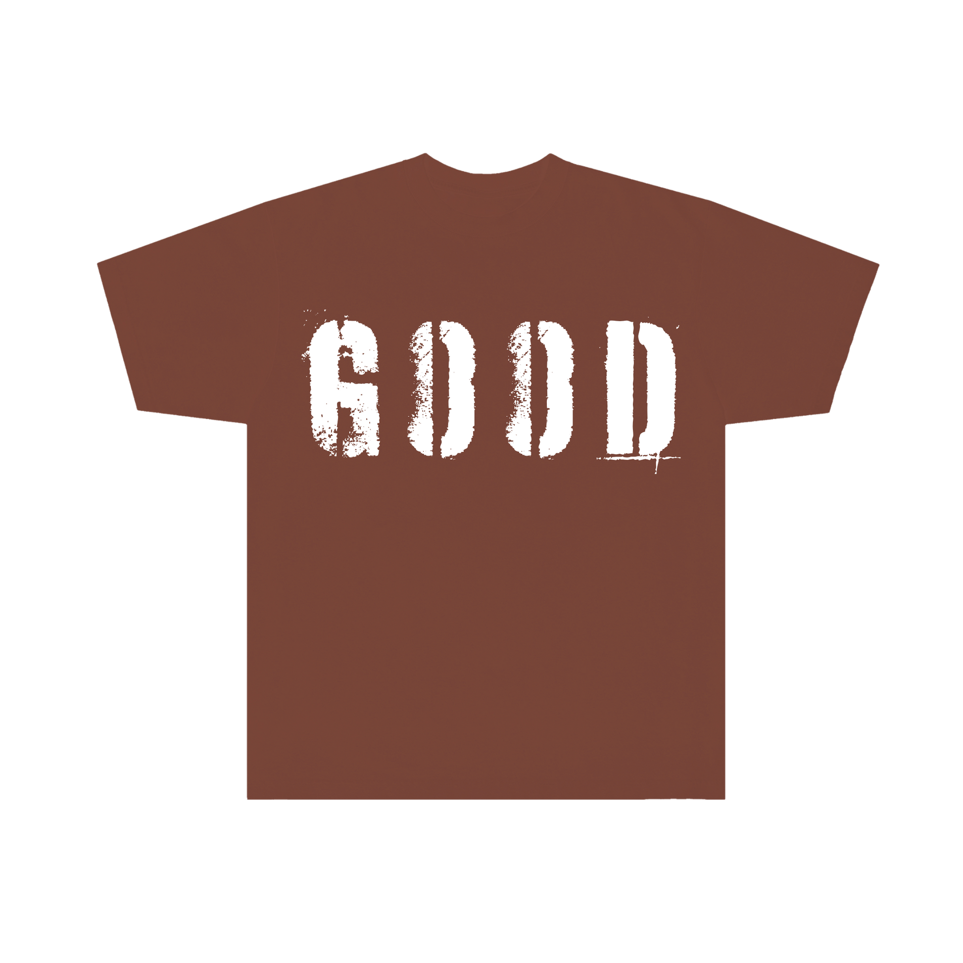 Unisex tee, spray paint design, standard men's sizing, tight collar.