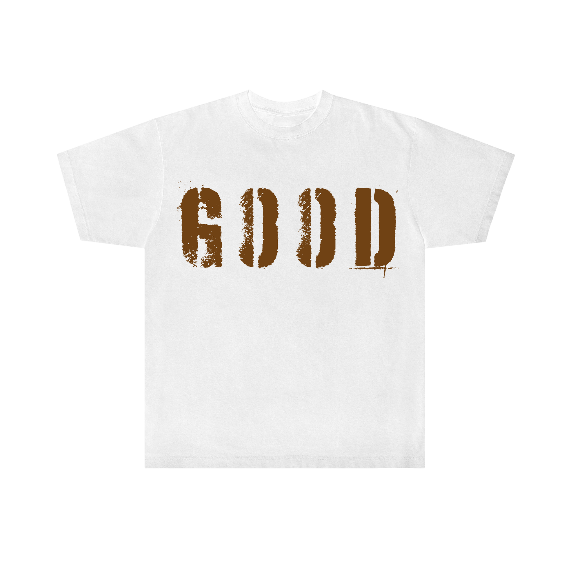 Unisex tee, spray paint design, standard men's sizing, tight collar.