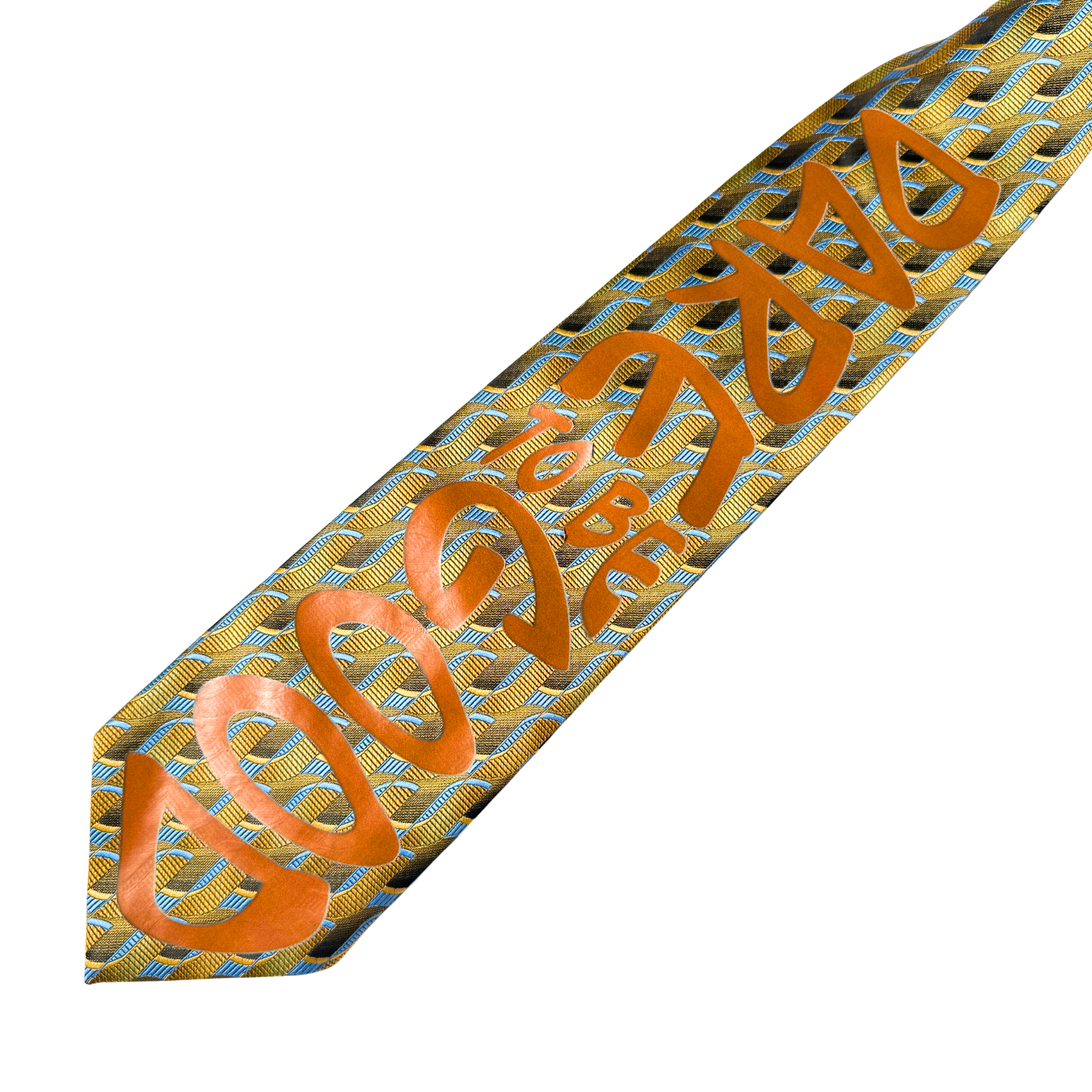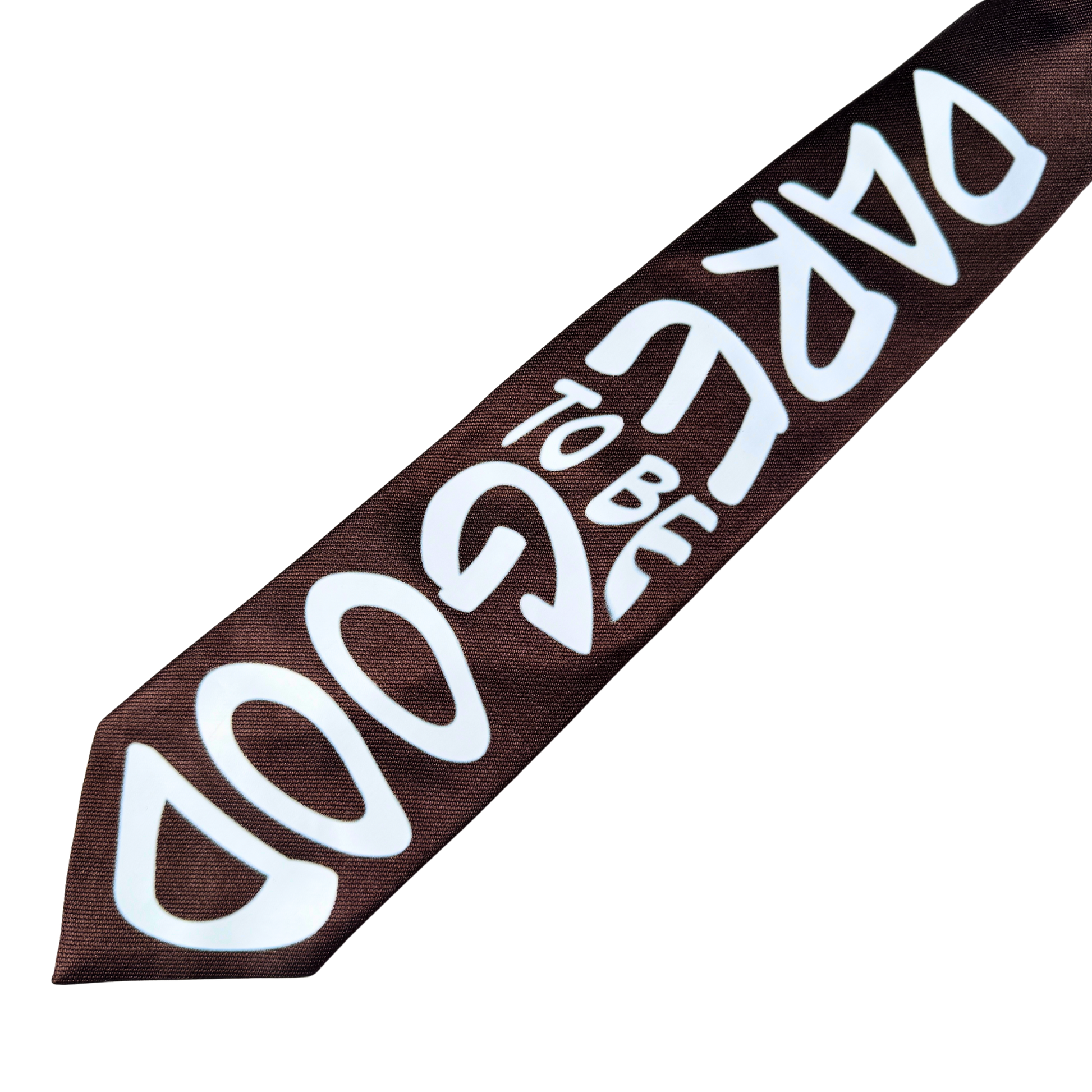 A variety of colorful ties with the Dare to be GOOD Richouthebox graphic.